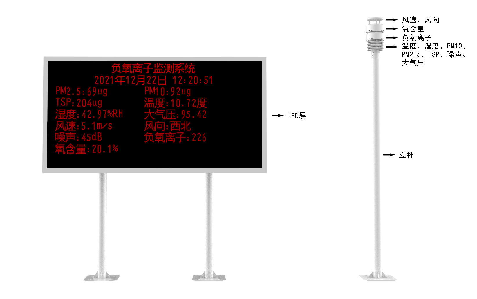 生態(tài)環(huán)境監(jiān)測(cè)站可全天候監(jiān)測(cè)空氣中負(fù)氧離子濃度,同時(shí)可根據(jù)用戶需求擴(kuò)展監(jiān)測(cè)項(xiàng)目,如:空氣溫度、空氣濕度、PM2.5、PM10、大氣壓力、氧含量、噪聲、風(fēng)速、風(fēng)向等氣象要素;模塊化結(jié)構(gòu)設(shè)計(jì),傳感器都可以單獨(dú)替換,配備專業(yè)安裝支架,現(xiàn)場(chǎng)可通過(guò)LED屏幕直接讀取數(shù)據(jù),亦可遠(yuǎn)程云平臺(tái)/WEB/微信公眾號(hào)實(shí)時(shí)查看數(shù)據(jù),后期運(yùn)營(yíng)維護(hù)方便。