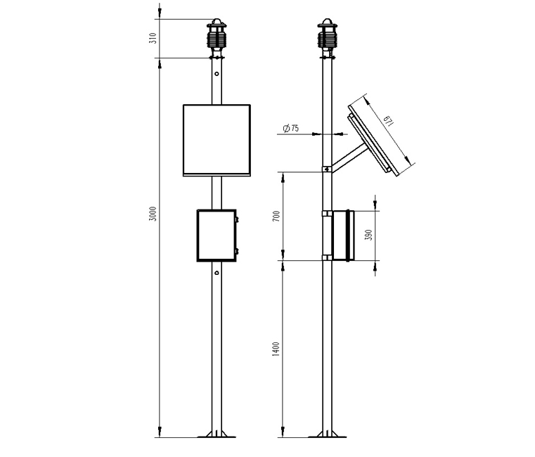 5、兩米碳鋼支架,頂部無需法蘭盤可直接套接傳感器(實(shí)用新型專利,專利號(hào)ZL 2020 2 3211795.0)